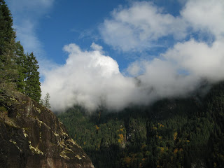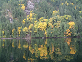In front of our cabin, Goat Island has a glorious display of maples, dogwoods and alders. The swaths of colour paint the hillsides along stream carved gullies and slopes.
