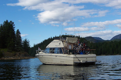 October - Fall colours make Powell Lake beautiful and I invent Margy's Mouse Mechanism to keep little critters off the float. Wayne and I set up a booth again at the Powell River Newcomer Social.