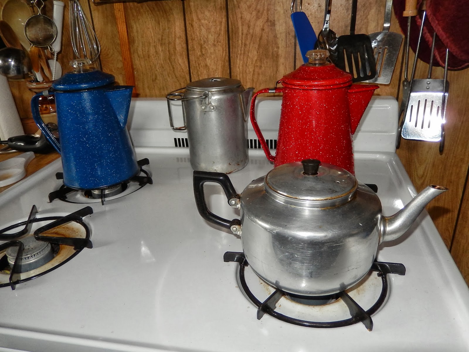 I wasn't picky about what could work as a teapot, but last week I found the perfect one at the MCC Thrift Store. It only cost 50 cents, and a bit of Comet made it looking like new inside and out. Whether I'm using the propane range or woodstove heat, it keeps my tea warm and ready to drink throughout the evening.